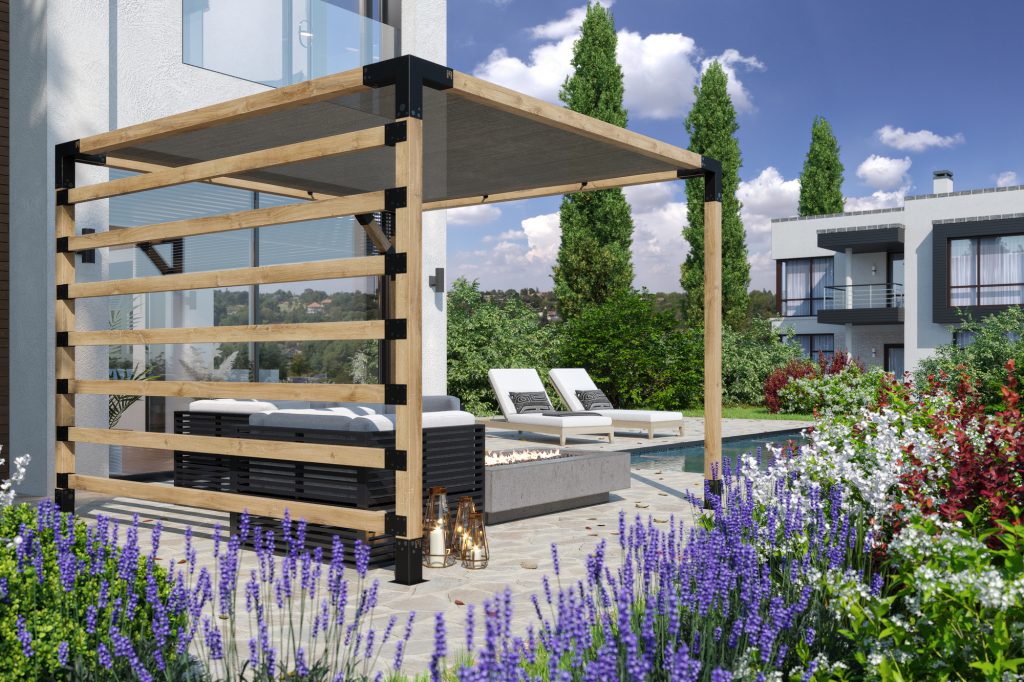 Modul Ar studio produces modular pergolas that the client can buy as a kit and assemble himself in his garden. It was essential to show how the pergola looks in its natural environment.