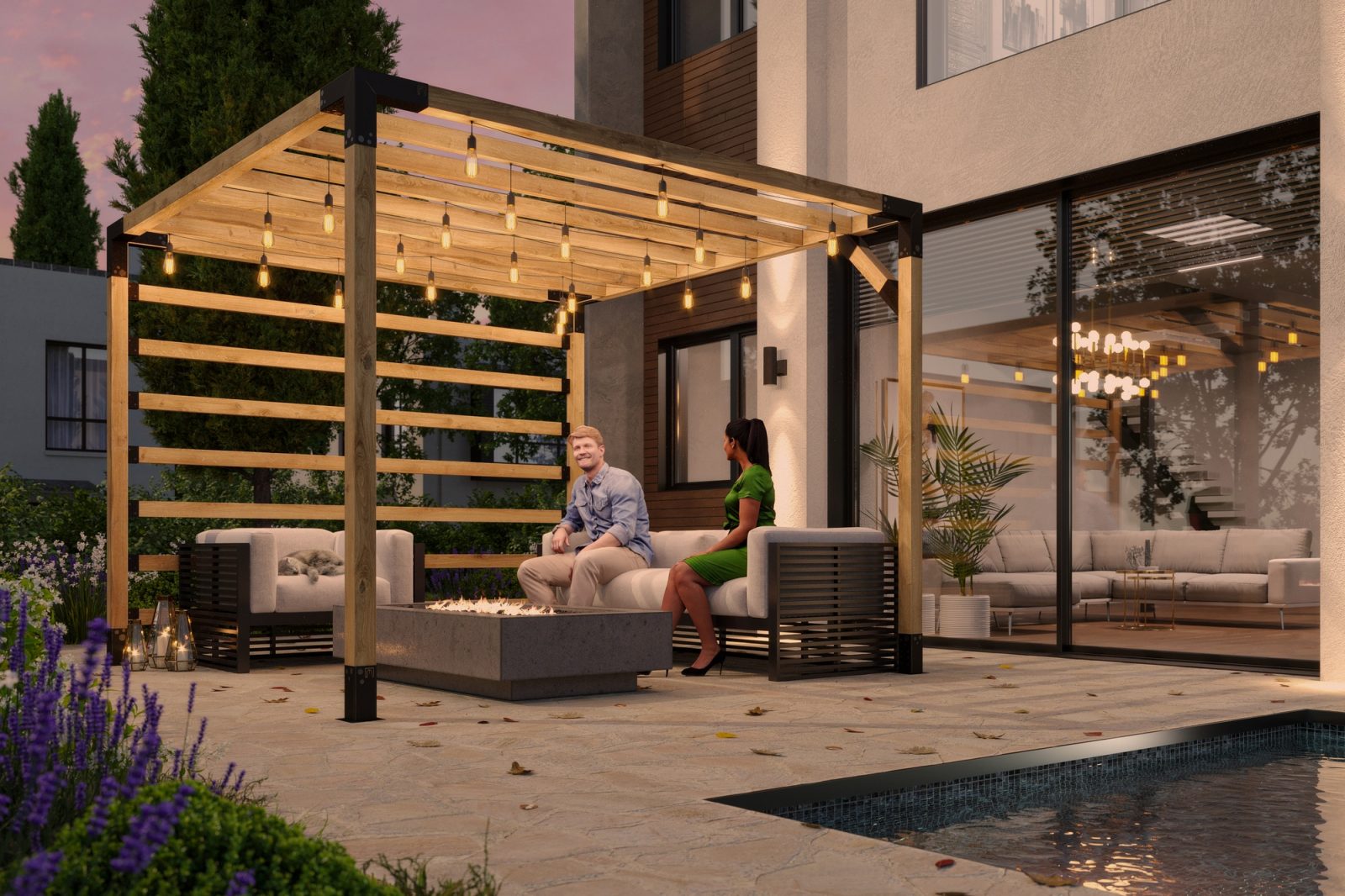 Modul Ar studio produces modular pergolas that the client can buy as a kit and assemble himself in his garden. It was essential to show how the pergola looks in its natural environment.